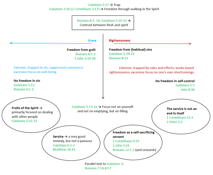 Remark: True freedom from sin is not the same as freedom in one’s own efforts against sin. A godly life must not become an end in itself. Striving for self-control leads not to freedom, but to bondage. True freedom comes only from Christ. Both freedom in sin and an excessive fixation on self-control are ultimately expressions of selfishness!